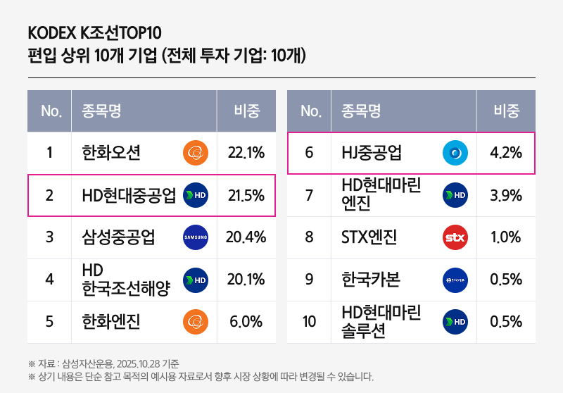 특히 고마진 핵심 부품주인 ‘선박 엔진’ 관련 기업도 함께 담아, 조선업 슈퍼 사이클과 맞물린 장기 호황의 수혜를 기대할 수 있습니다.