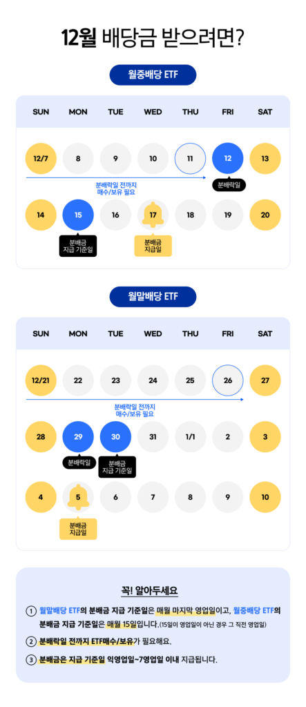 아래 12월 월배당 ETF 일정을 참고해보세요. ⬇️