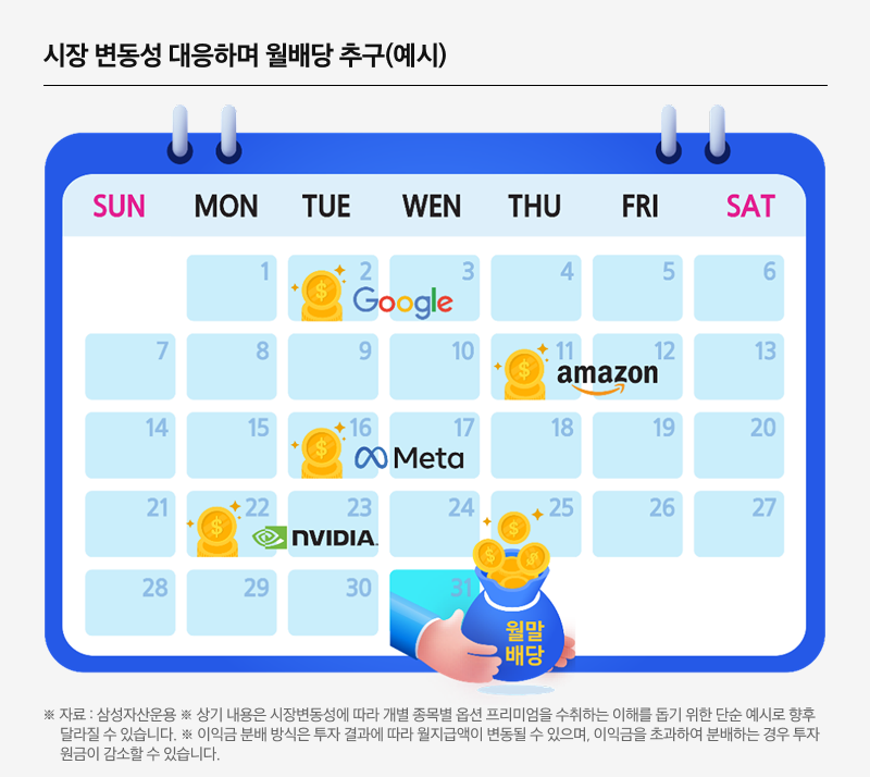 뿐만 아니라 검증된 미국 현지 전문가를 통해 종목별 이벤트에 따라 유동적으로 정밀 대응이 가능합니다. 시장의 변동성과 개별종목의 내재변동성 기반으로 커버드콜 전략을 수행하며, 빠르게 변화하는 테크 트렌드에 맞춰, 선제적으로 신규 종목을 편입하여 시장에 대응할 계획입니다.