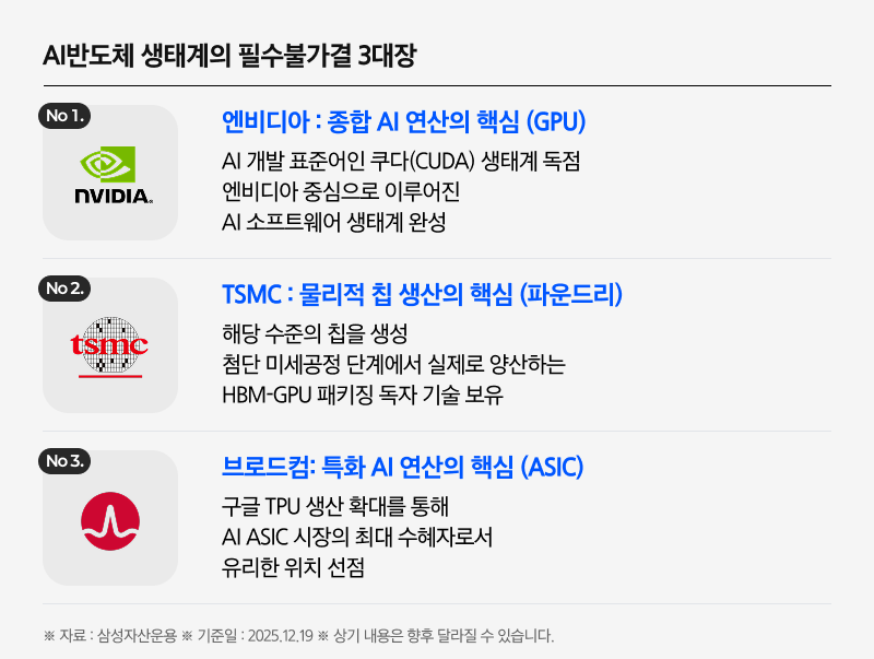 주문형 AI칩(ASIC) 설계를 담당하는 브로드컴이 포함되어 있습니다.