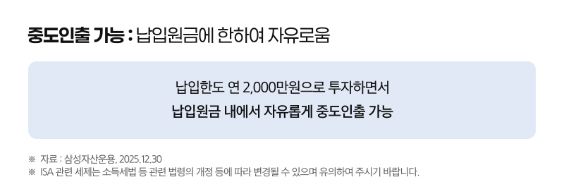| 📌[ Q&A ] 알려줘 KODEX! ISA 배당맛집, 이것이 궁금해요 Q1. ISA 계좌는 무조건 3년을 버터야 하나요? 결혼도 해야하는데.. 급하게 돈이 필요하면 어쩌죠? 결론부터 말씀드리면, 내가 입금한 ‘원금’내에서는 언제든 세금 한 푼 없이 자유롭게 찾으실 수 있습니다. 많은 분들이 “중도인출 하면 그동안 받은 절세 혜택 다 뱉어내야 하는거 아냐?”라고 걱정하시는데요, ISA는 의외로 유연합니다. 납입한 원금 총액 안에서는 중도에 인출해도 세금 추징이나 혜택 회수가 없습니다. 급하게 전세금이 필요하거나 목돈이 나갈 때 비상금 창구로 쓸 수 있는 이유죠. 단, 주의하실 점은 딱 2가지입니다. 1) 수익금 인출 : 내가 넣은 원금보다 더 많은 금액(수익금)을 인출하게 되면, 그 부분은 ‘중도해지’로 간주되어 비과세 혜택을 못 받게 됩니다. 2) 납입한도 재사용 불가 : 예를 들어 올해 2,000만원 한도를 꽉 채워 넣었다가 1천만원을 인출했다고 해서, 다시 올해 1천만원을 채워 넣을 수는 없습니다. 한도는 인출과 상관없이 입금 시점에 소진되기 때문이죠. 3년이라는 기간이 길어 보이지만, 원금 인출이 자유롭다는 점을 기억하세요! 분배금은 재투자하고, 정말 급할 때만 원금 범위 내에서 활용하는 것이 ISA 계좌를 가장 스마트하게 쓰는 방법입니다.😊 |