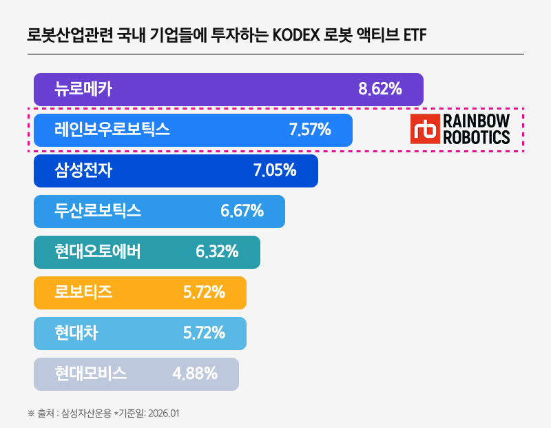 새로운 미래 먹거리인 로봇 산업! 로봇 산업 관련 국내 기업들에 투자하는 ETF로, 산업용·서비스 로봇 전반에 투자합니다.